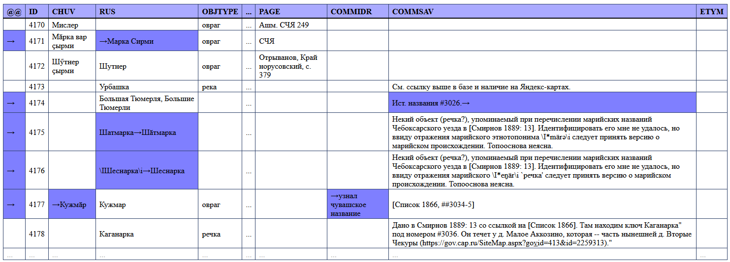 Chuvash Toponymy Database v.0.1